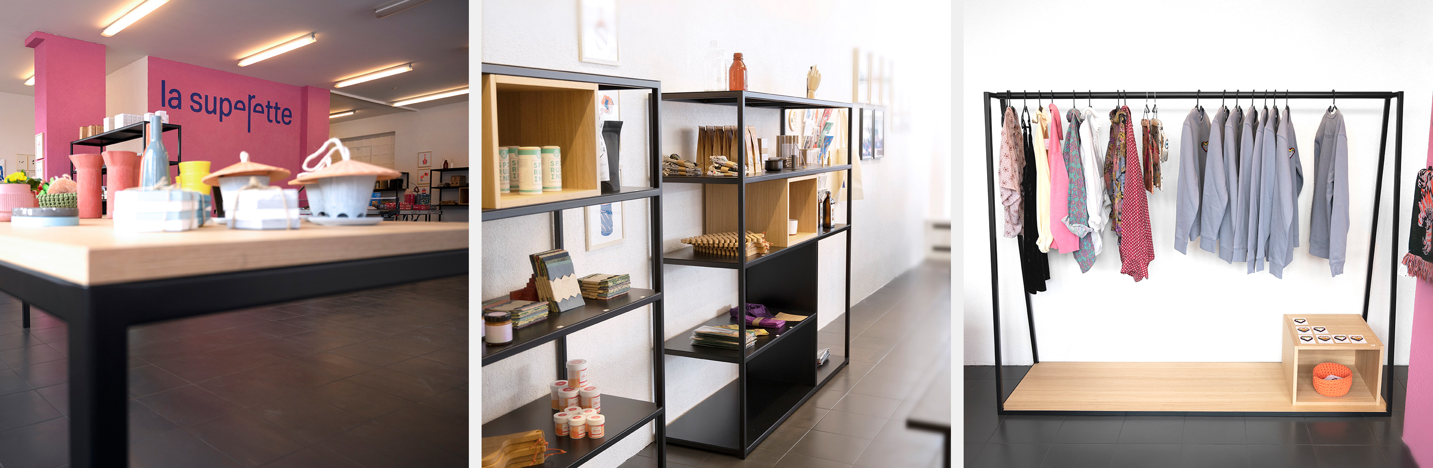 De beaux produits élégamment présentés dans un mobilier commercial fin et aérien : SymerLine est l’heureux partenaire de La Supérette Pop Up, shop éphémère sédunois nouvellement ouvert à l'Avenue de la Gare 8.