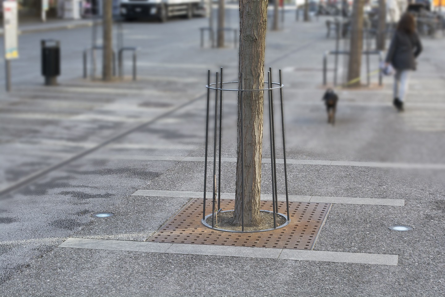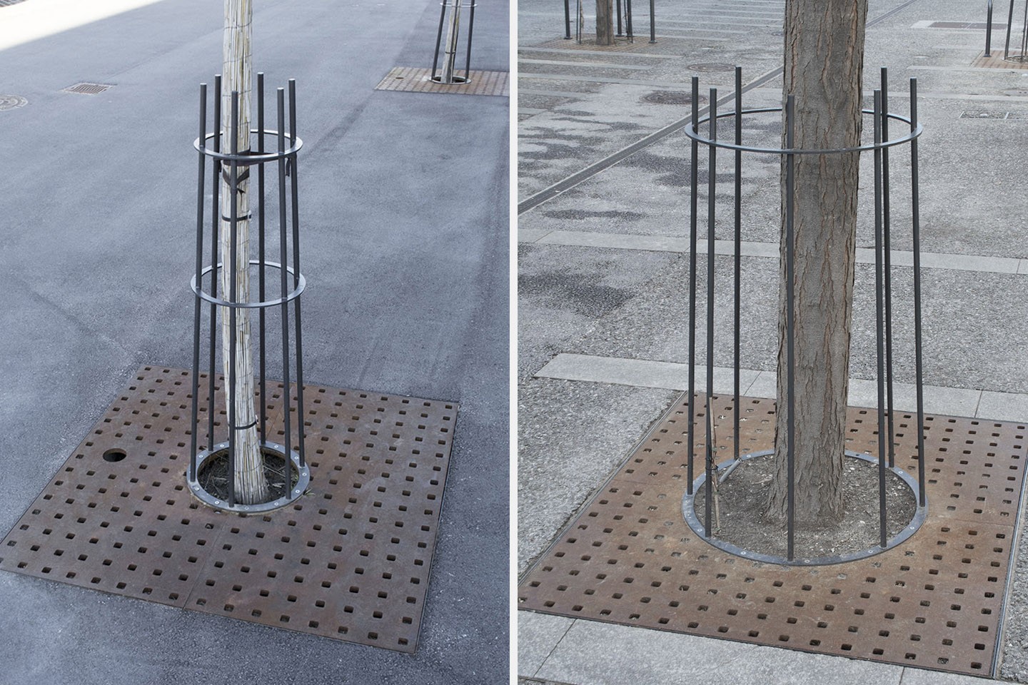 - Sur grille pour entourage d’arbre, fixés par visserie M8