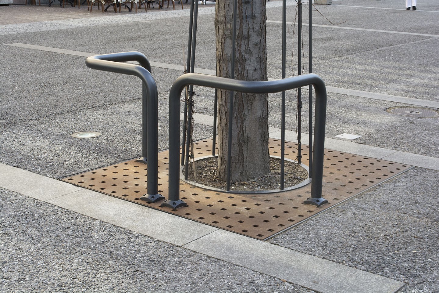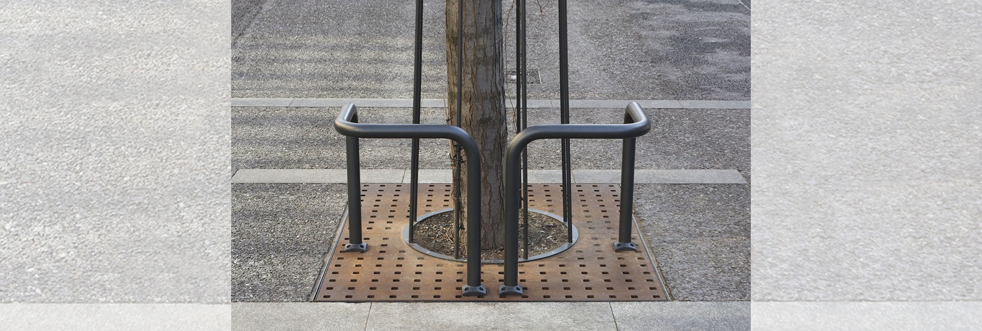 - Sur support pour entourage d'arbre, par visserie M8