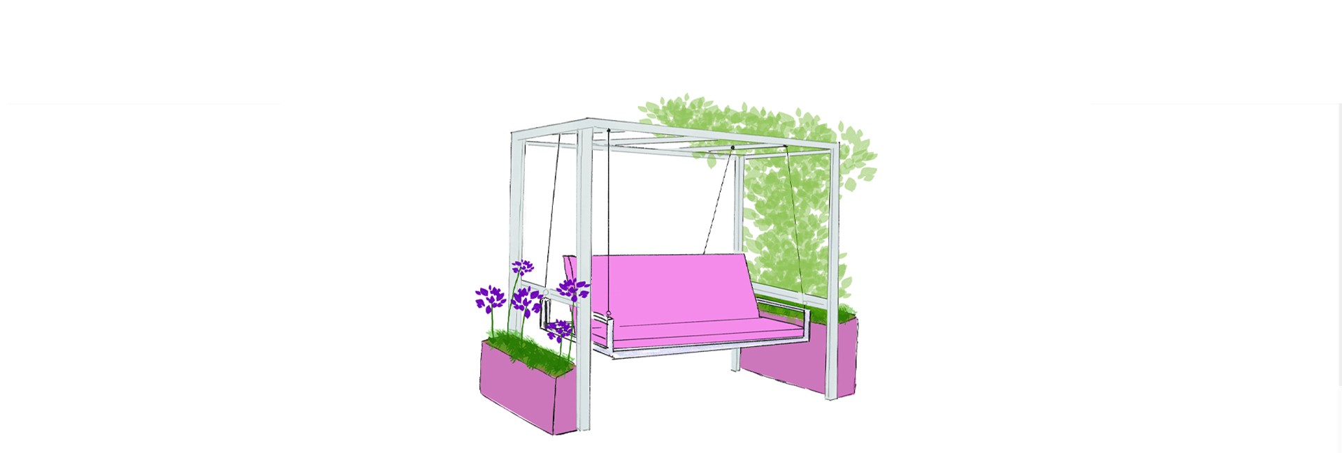 Balancelle 2 places aérienne avec pergola intégrée.